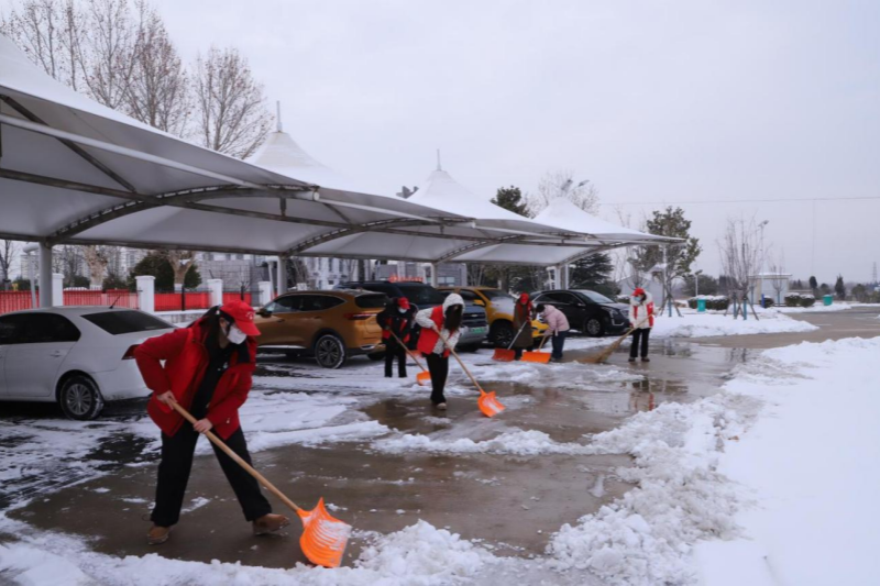 抗排队党支部巾帼文明示范岗的女队员们积极响应号召,主动扛起责任。“雪情就是命令,除雪就是责任!咱们巾帼文明示范岗的姐妹们,关键时刻绝不能掉链子!”针对单位停车场车辆密集、积雪易结冰的特点,女队员们手持除雪工具细致清扫车辆周边积雪,铲除路面薄冰,不放过任何一处安全隐患,为车辆停放和人员往来提供了安全便利的环境。雪落无声,担当有痕,她们以柔肩担重任,在劳动中展现出新时代女职工吃苦耐劳、乐于奉献的“半边天”风采,成为寒潮中一抹温暖的亮色。