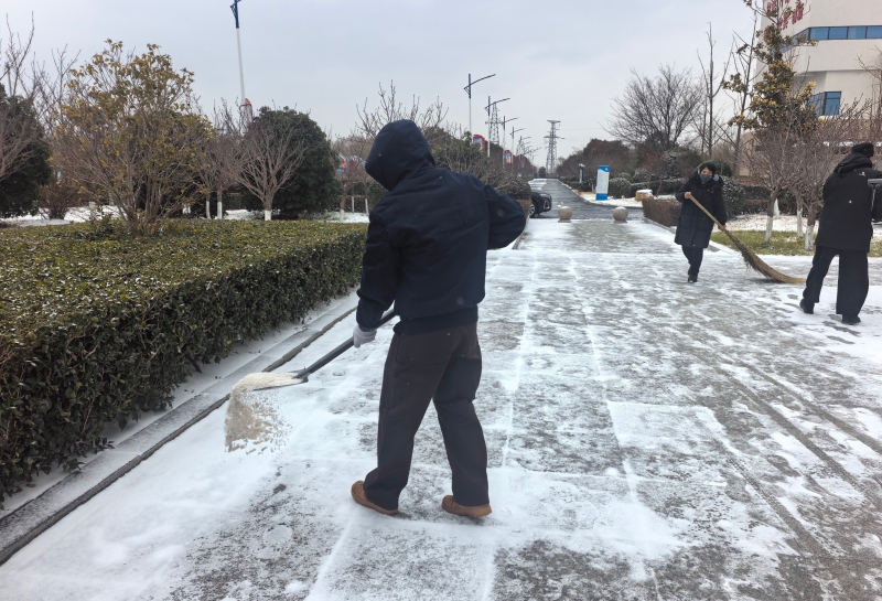 针对雨雪天气造成的道路积雪、结冰问题,单位第一时间组织干部职工分工协作开展除雪作业。作业人员携带融雪剂、铁锹等工具,优先对办公楼出入口、厂区主干道、厂房作业区通道等人员车辆密集区域进行清理。全体人员冒严寒、战风雪,高效完成除雪任务,确保道路畅通、环境安全。