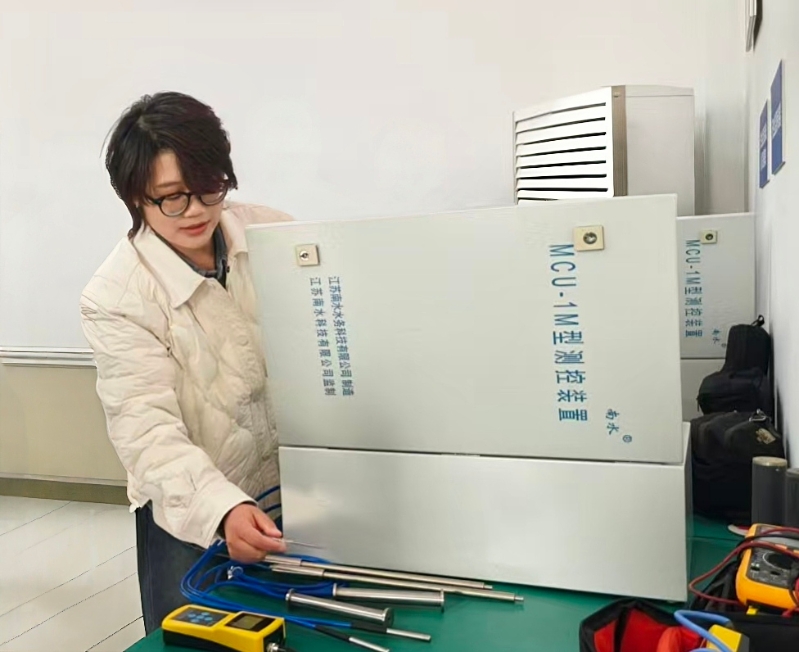 (图1:王琦正在演示操作MCU测控装置)